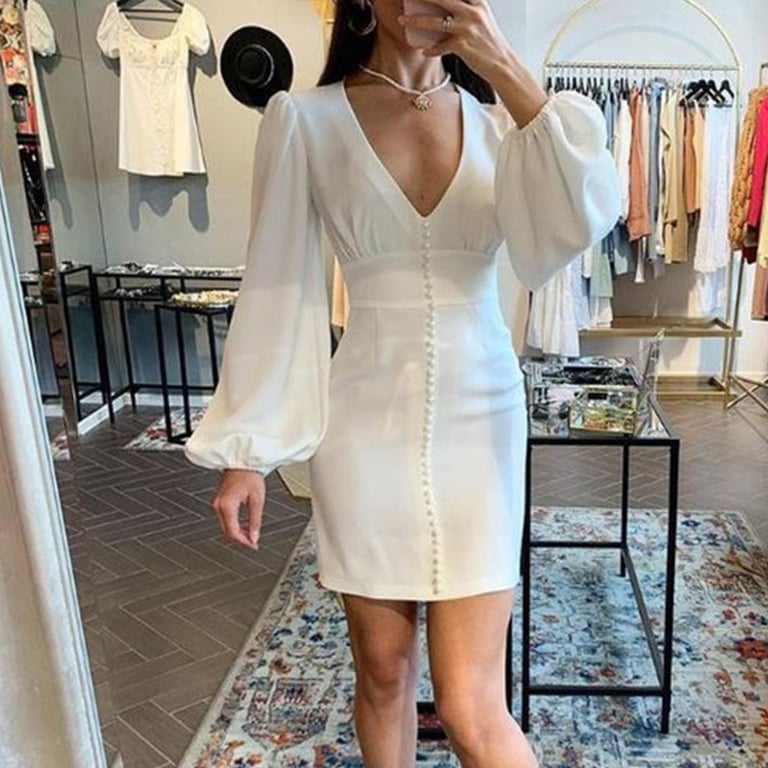 • Tags: Women's dress, mini dress, elegant dress, luxury dress, long sleeve dress, balloon sleeves, fitted dress, bodycon dress