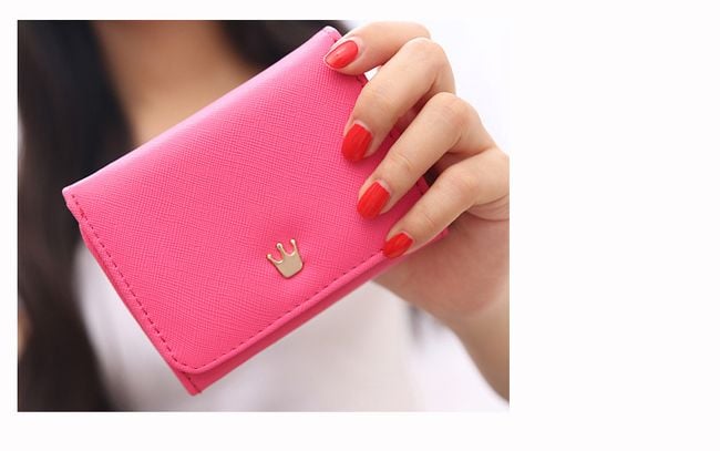 Elegant women's wallet, which is smaller in size but cleverly designed to easily accommodate a substantial stack of paper notes, a pile of coins, and several credit cards or other documents. It fastens with a practical snap. Made from durable material, and you can choose from several colour options.