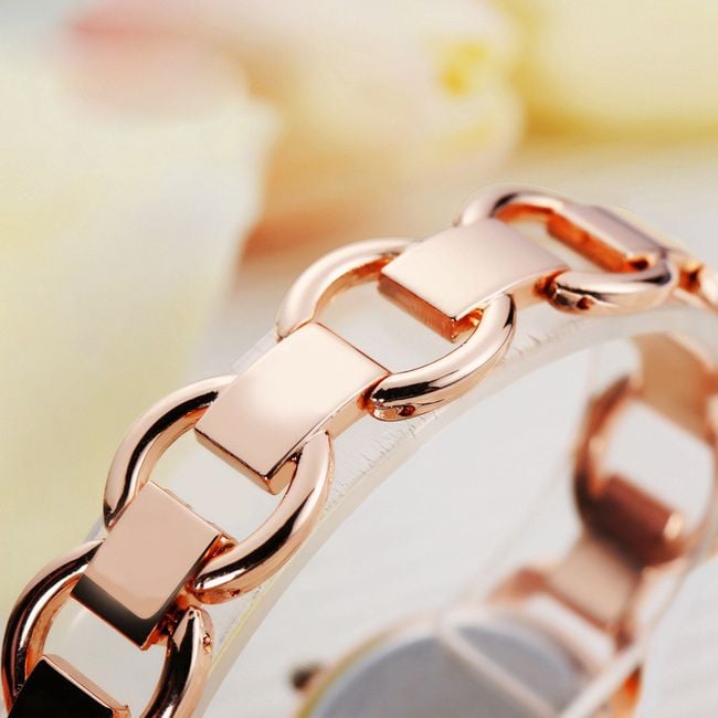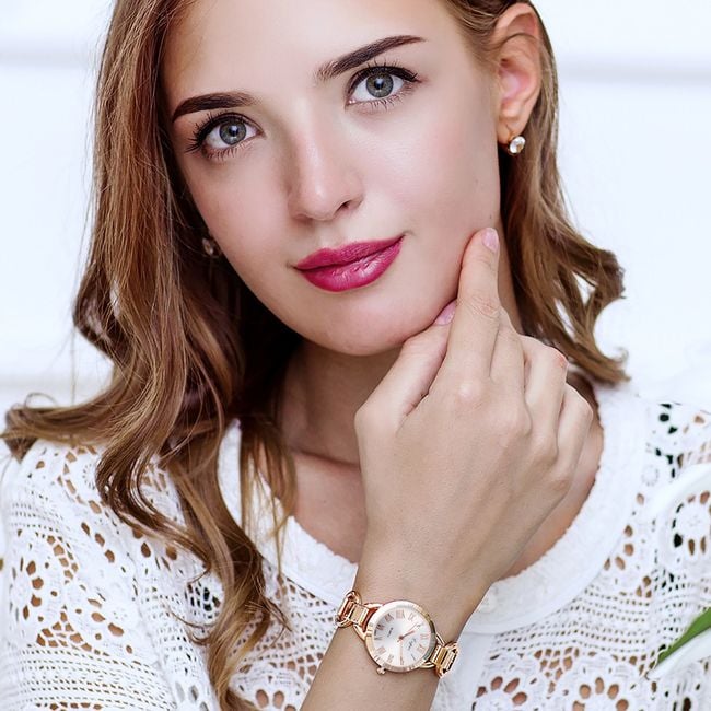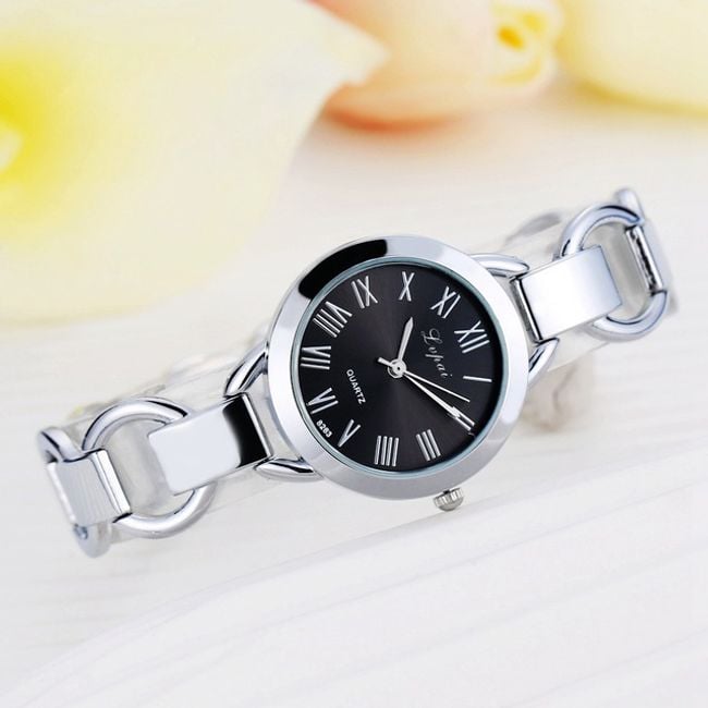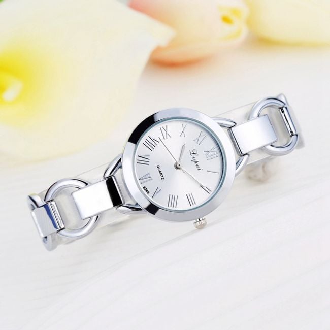 Women's elegant wristwatch with a metal strap.