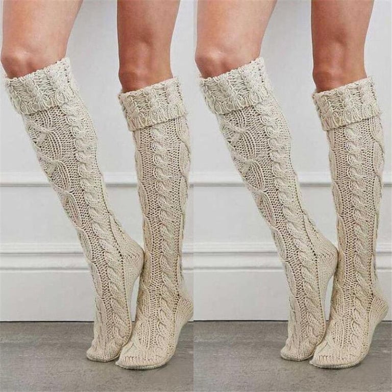 Women's knitted over-the-knee socks with a cable pattern. Universal size 55-65 cm. Available in multiple colour options.
