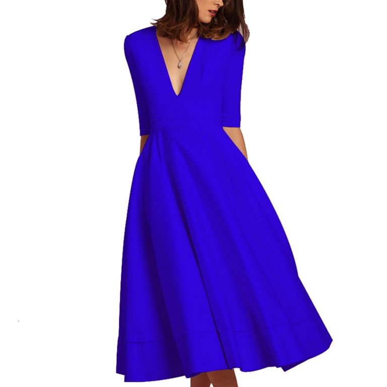 This dress with a wide skirt and half sleeves is just for you.