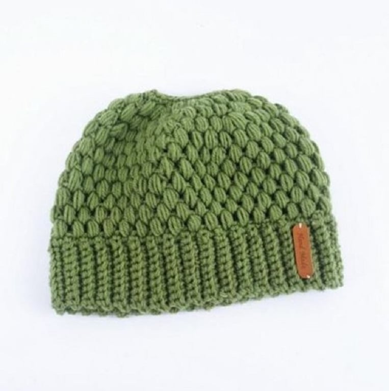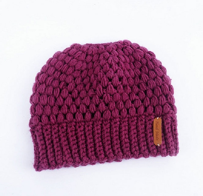 Beautiful winter knitted beanie with a practical ponytail opening.