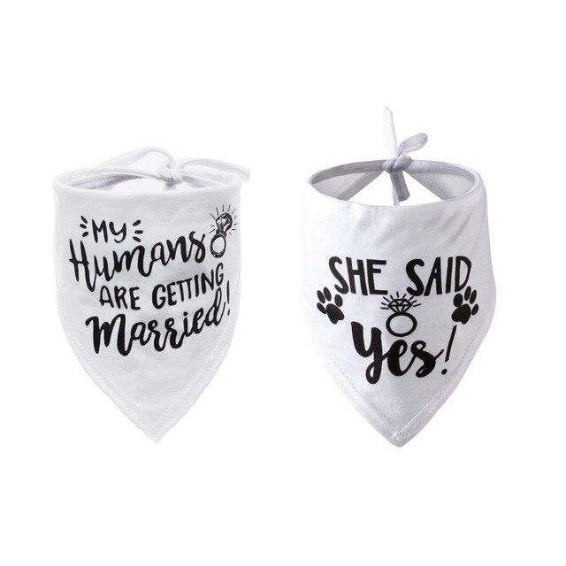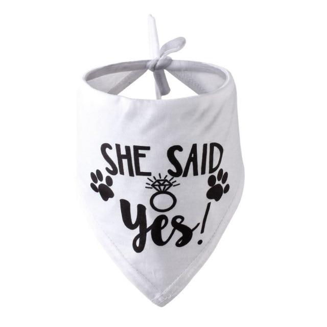 Engagement scarf for dogs with the inscription 'She said yes!' and more.