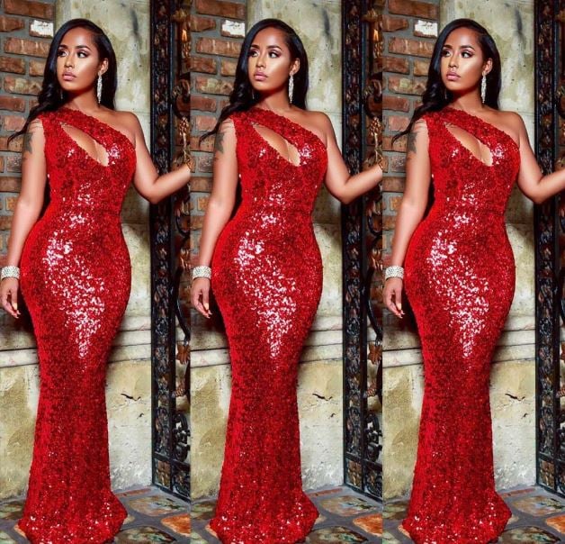 Evening red sequin cocktail dress.