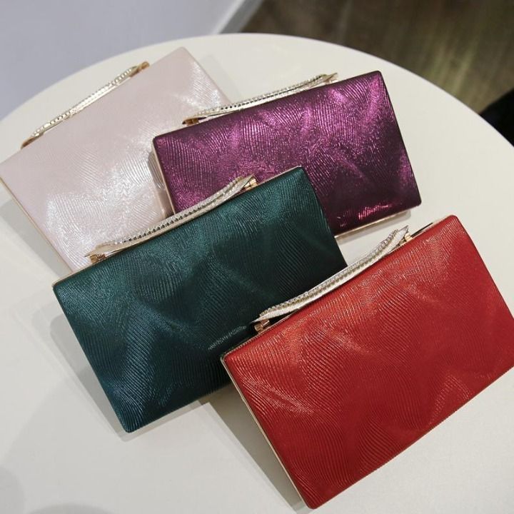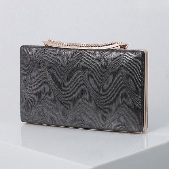 An evening social clutch with a silver strap.