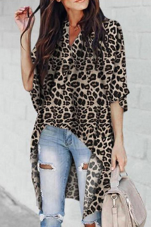 Extended leopard print dress shirt with buttons