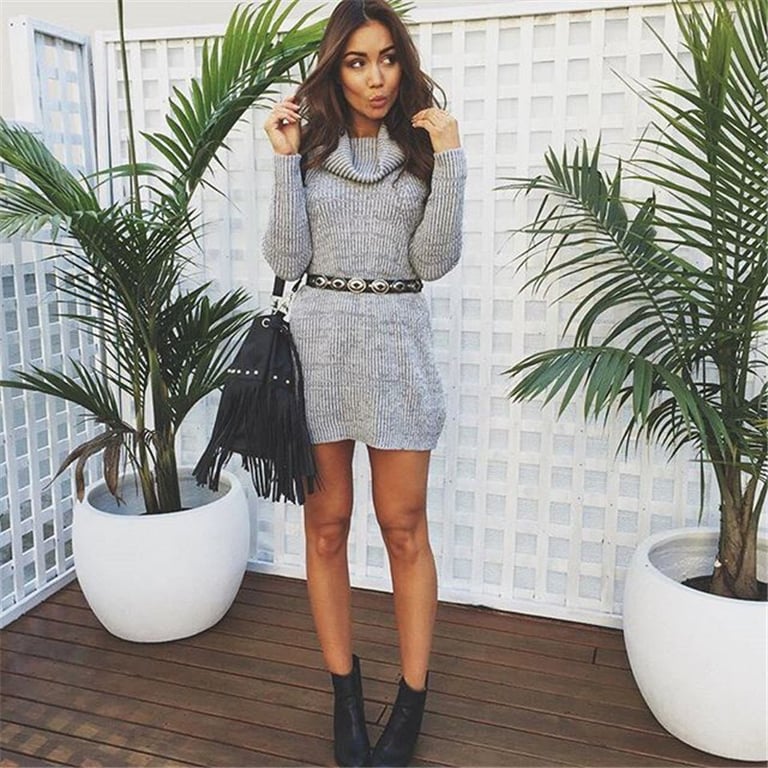 Women's extended sweater with a roll neck. It has a loose fit and is available in many colours.