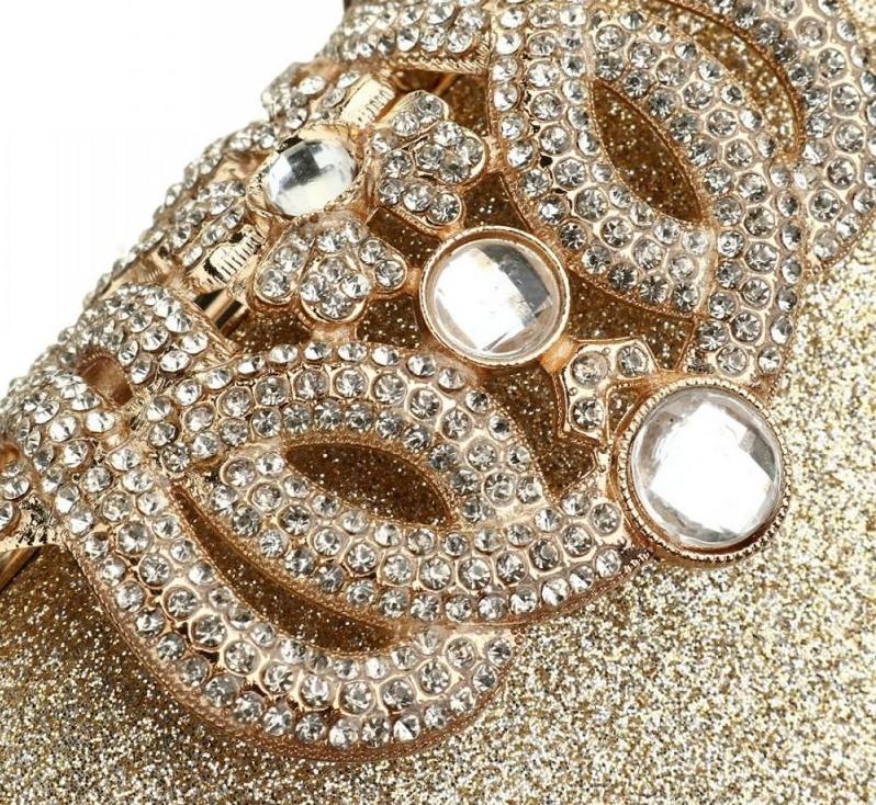 Beautiful shiny clutch with a decoration of transparent stones.
