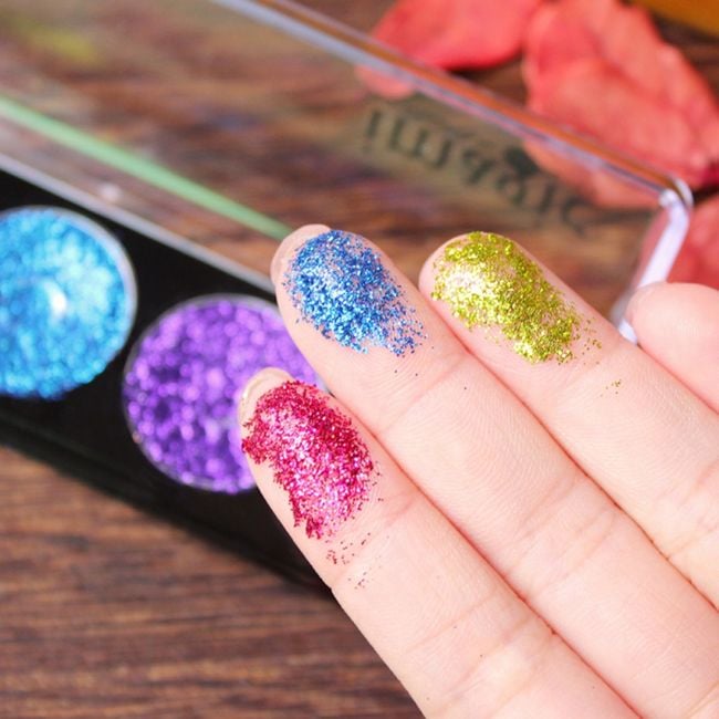 The eyeshadows are in a glitter finish. Choose from 3 colours.