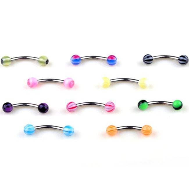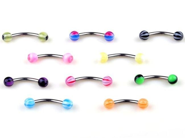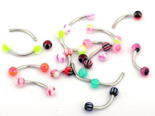 Brow piercings are easily lost – so stock up and order ten pieces at once. The set includes piercings with balls in various colours.