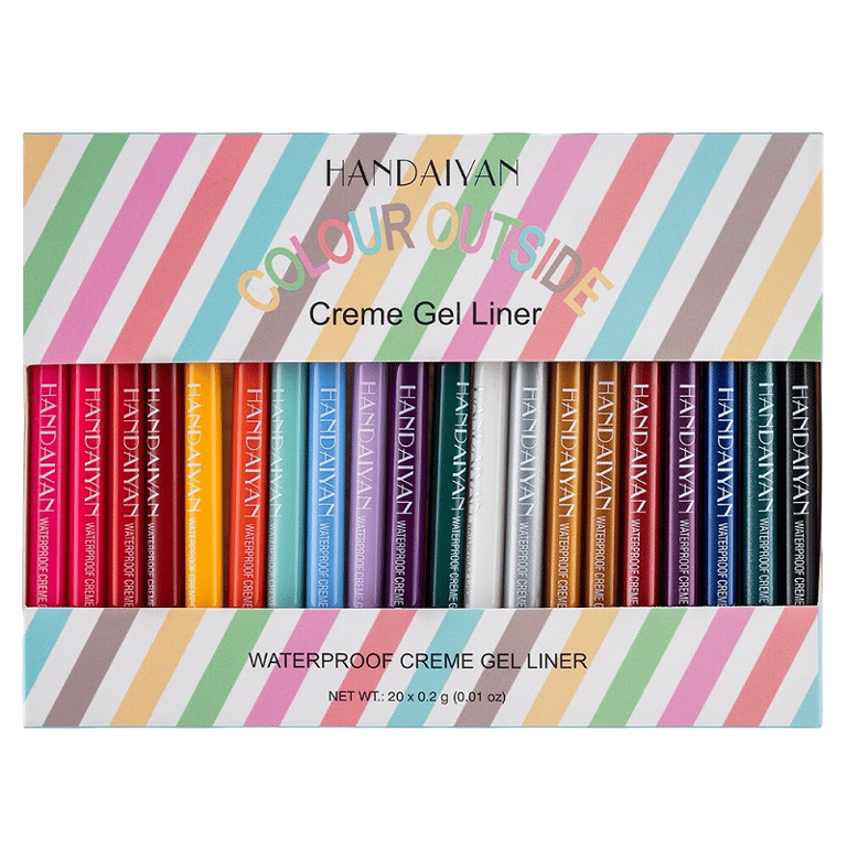 The eyeliner creates perfect and precise lines. Your eyes will be striking and unmissable. The set includes 20 different colours, allowing you to create stunning makeup looks.
