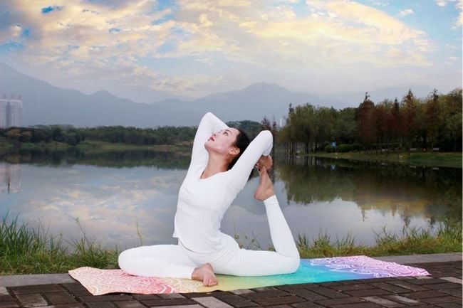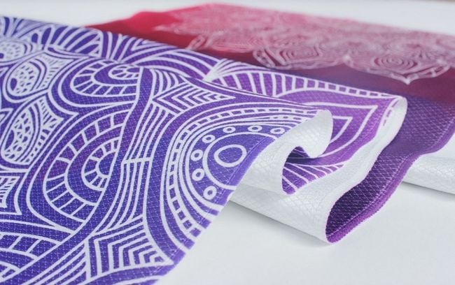 This fabric yoga mat is ideal for travel due to its compactness.