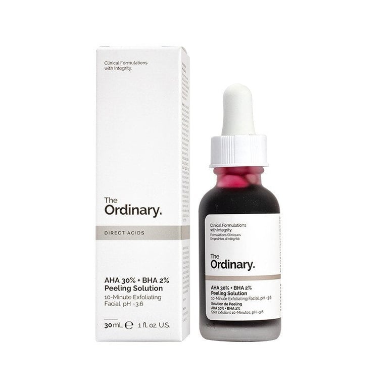 Facial serum with AHA 30% + BHA 2% for exfoliating treatment.