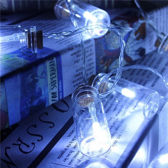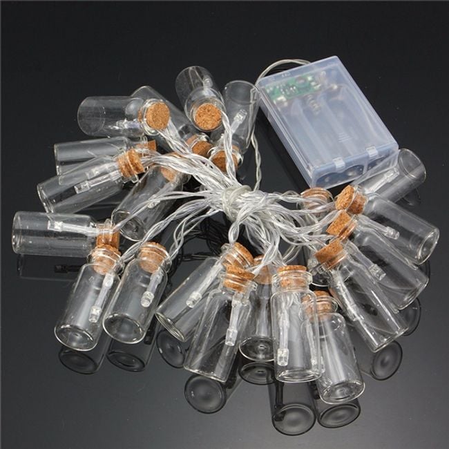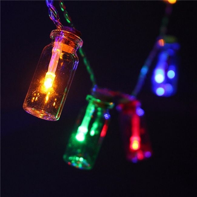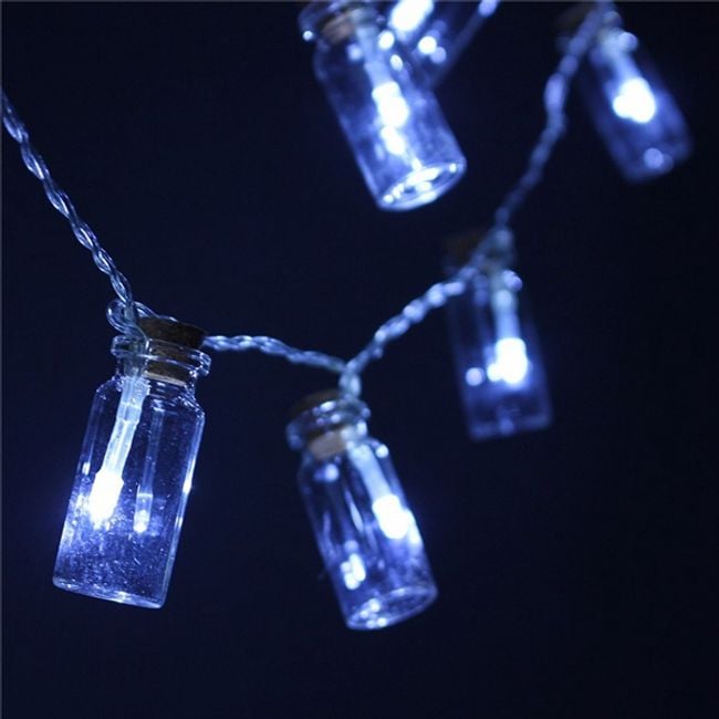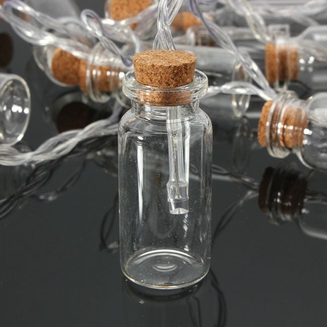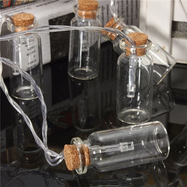 Lighting straight out of a fairy tale. With this light chain, you'll feel magical no matter where you install it. 20 LED bulbs nestled in smaller decorative glass bottles with cork stoppers will always create the perfect romantic atmosphere.