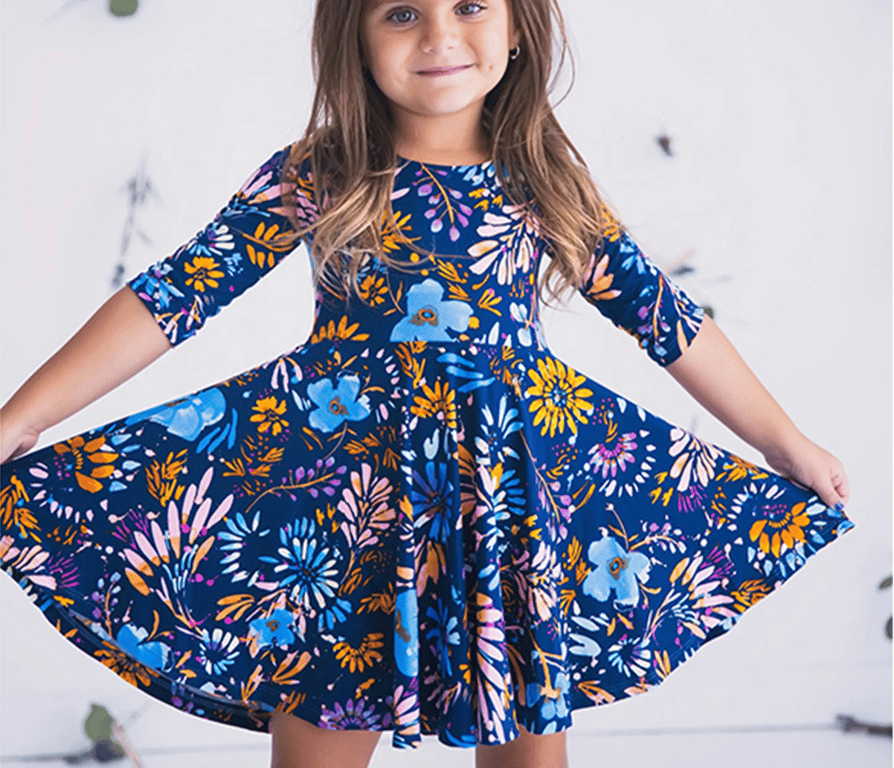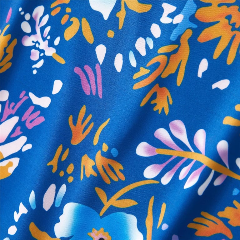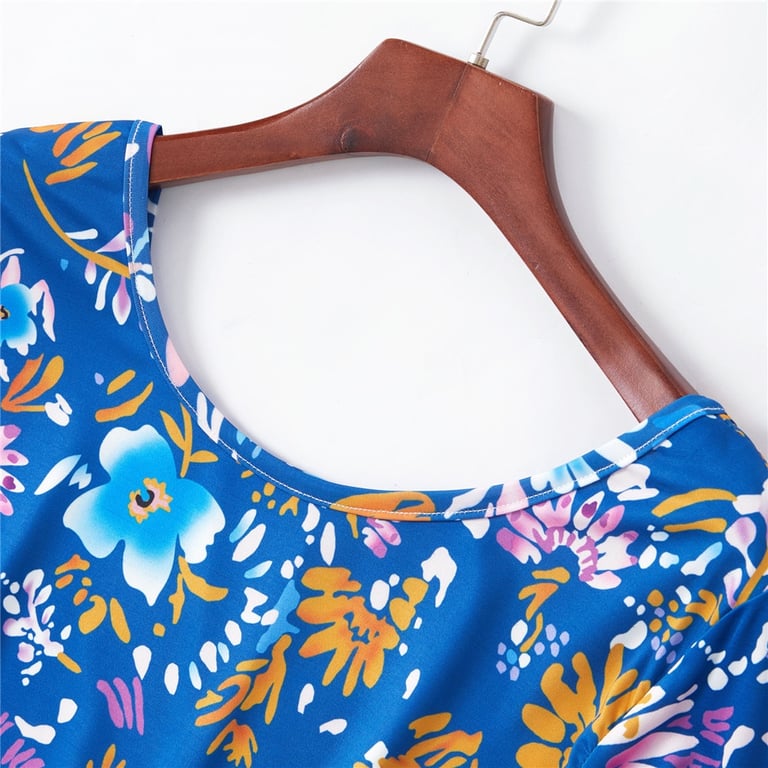 Family Summer Short Dress with Floral Pattern and 3/4 Sleeves