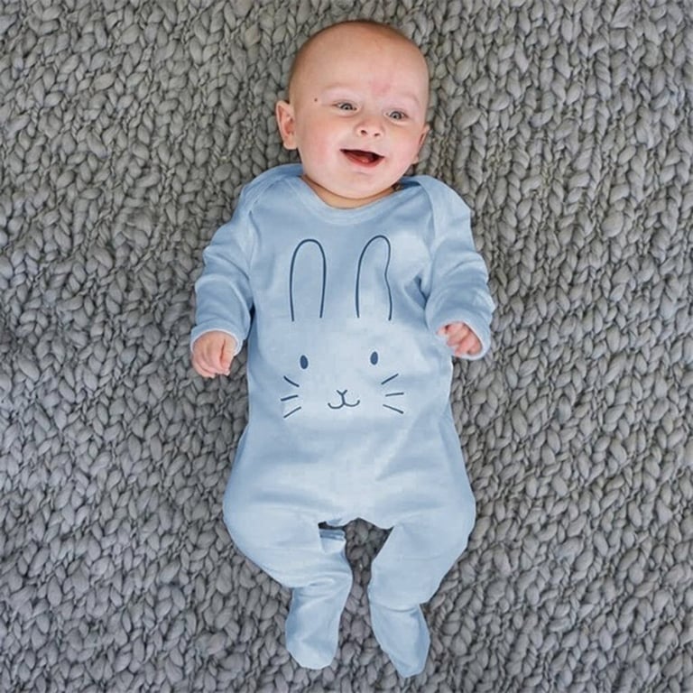 Children's bodysuit with dungarees. Fastened with snaps. Long sleeves and legs. Colourful print featuring a bunny. Available in multiple colour options.