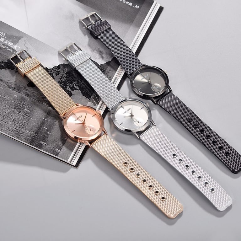 Elegant women's watch with a subtle dial without numbering. Adjustable strap. Available in three colour variants.