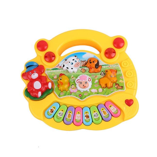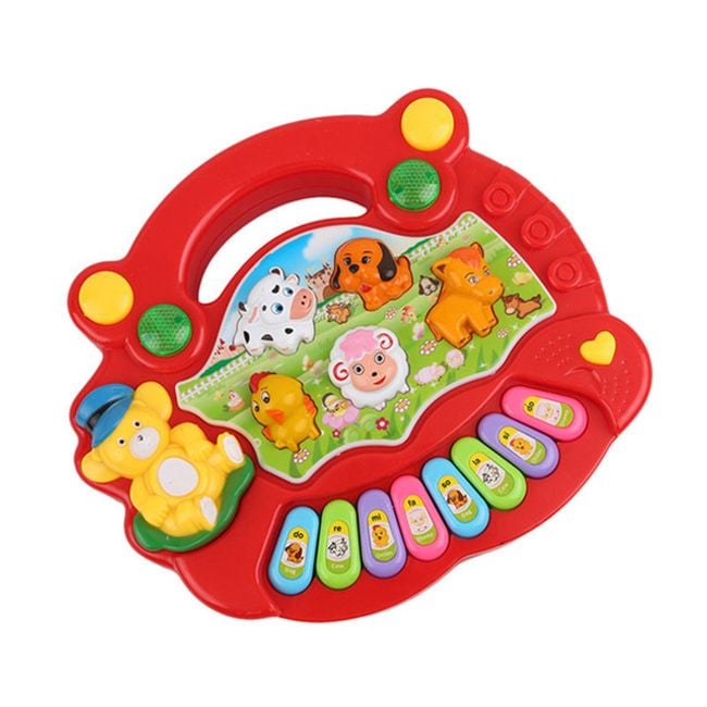 The piano in vibrant colours with animals offers plenty of melodies and sounds. When an animal is pressed, the piano produces a mixed sound of the respective animal with music.