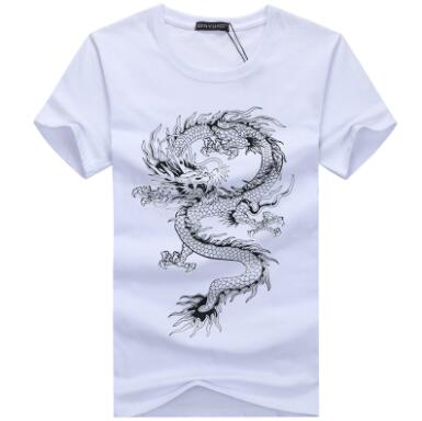 Fashionable Men's Short Sleeve T-Shirt with Dragon Print