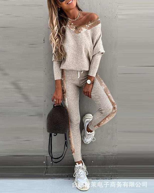 Fashionable plain women's tracksuit decorated with sequins