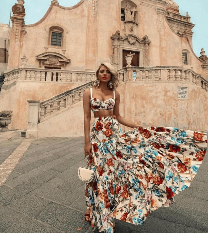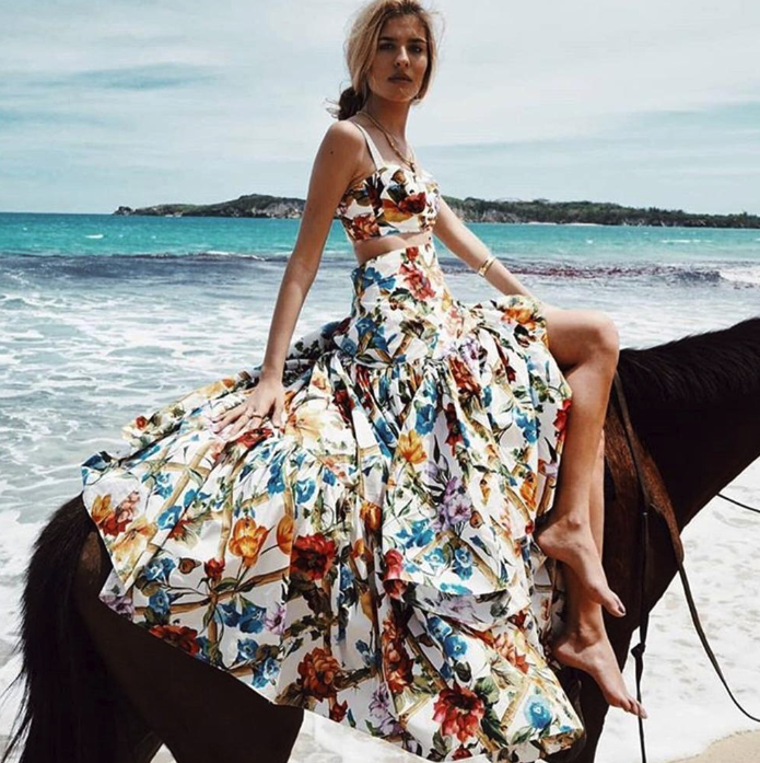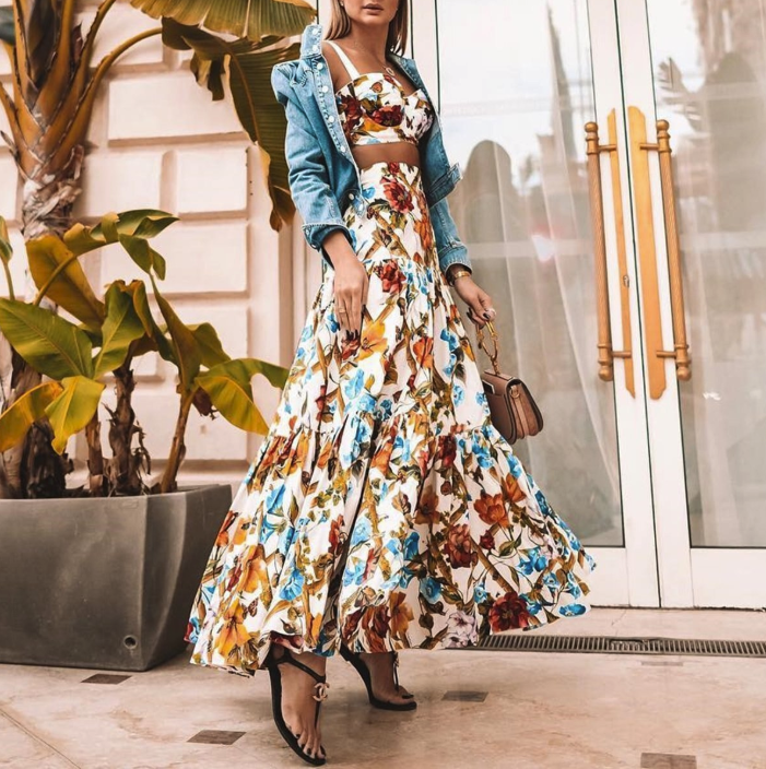 Fashionable stylish women's summer maxi dresses with a pattern.