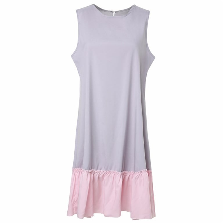 Tags: dress, long, grey, sleeveless, comfortable, pleasant, quality, summer, casual, women, clothing, pink trim