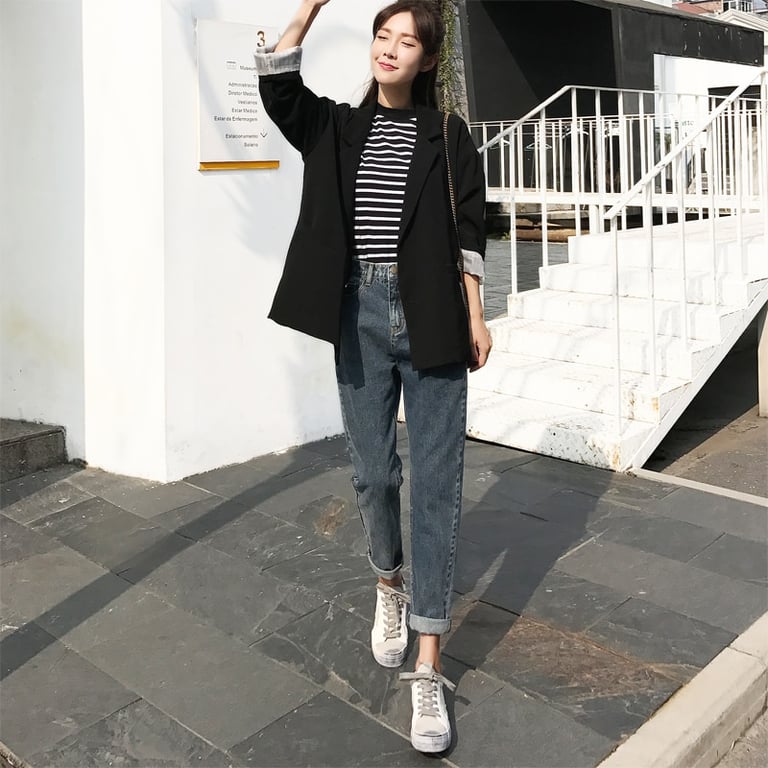 Fashionable women's high-waisted jeans