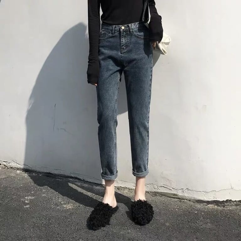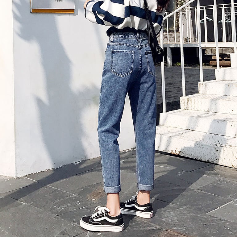 Fashionable women's high-waisted jeans.