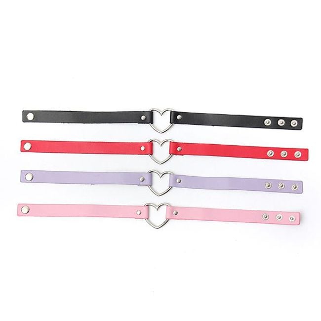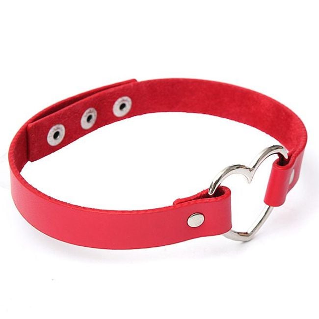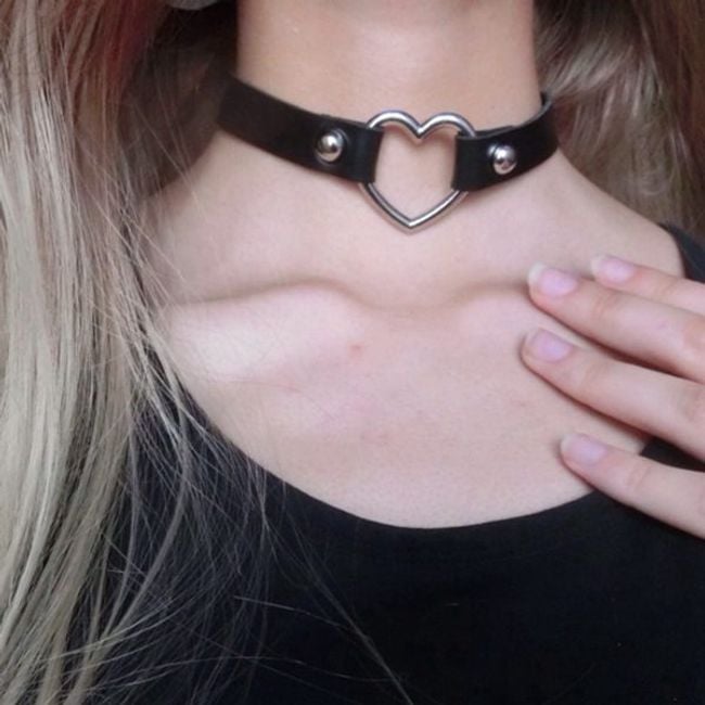 A fashion accessory that will make you stand out. Women's faux leather choker in punk style. It features a heart in the middle. At the end, it is equipped with three snaps, allowing for three different length adjustments. Available in four colour variants.