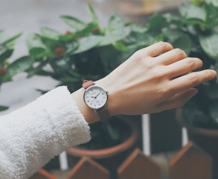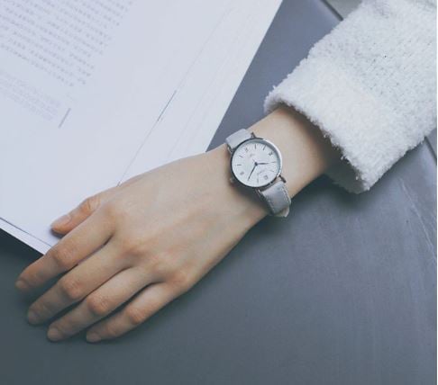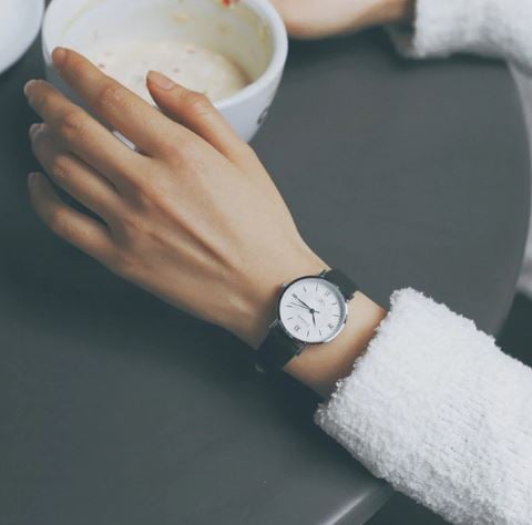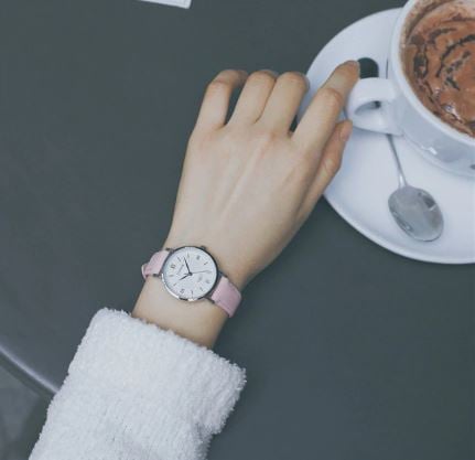 Faux leather metal women's watch with a medium dial