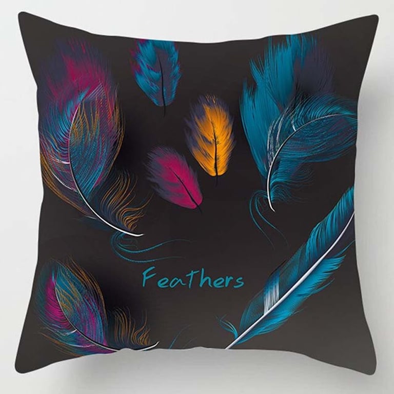 Stylish cushion covers with feather patterns. Great for decorating any room.