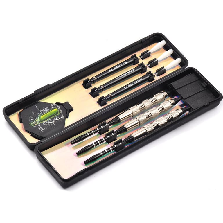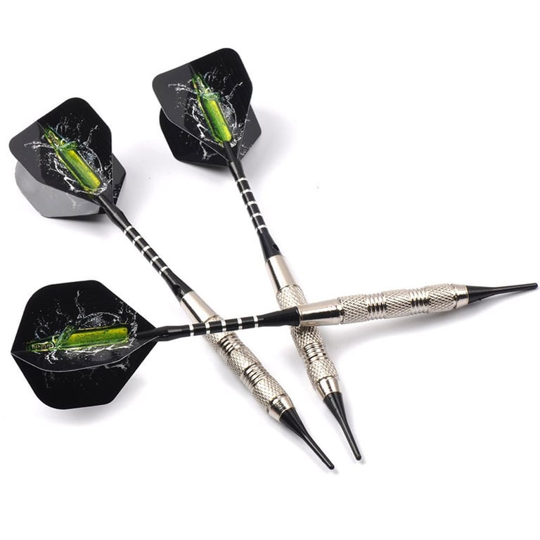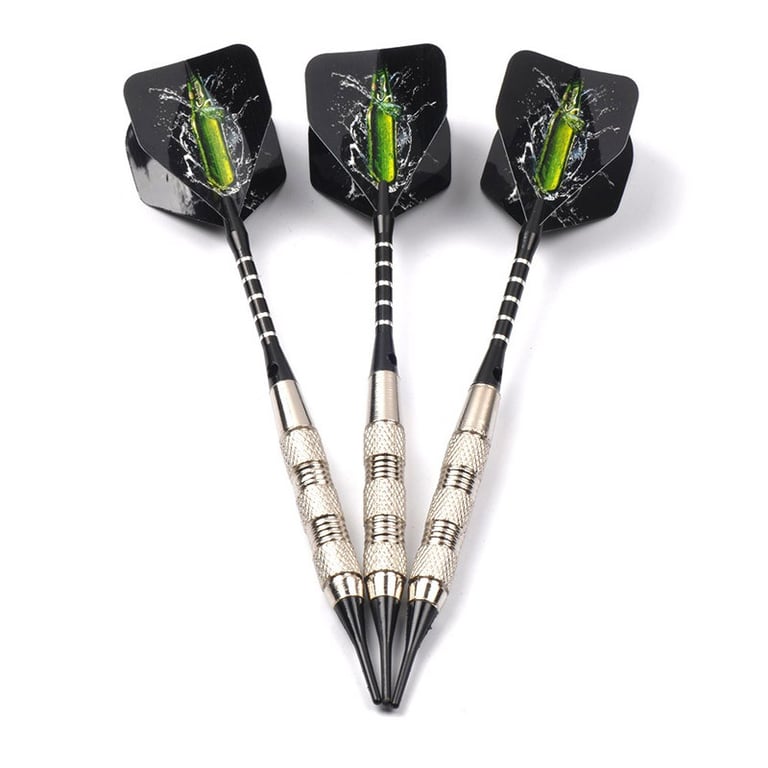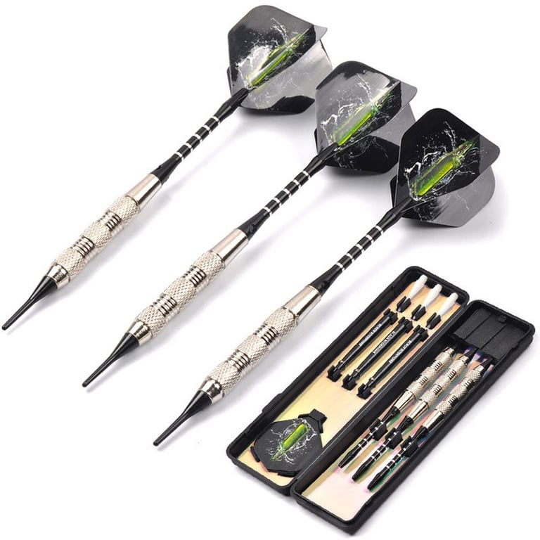 Set of darts with safety rounded tips. Elegant portable box. Made for electronic dartboards. The set includes 3 darts.