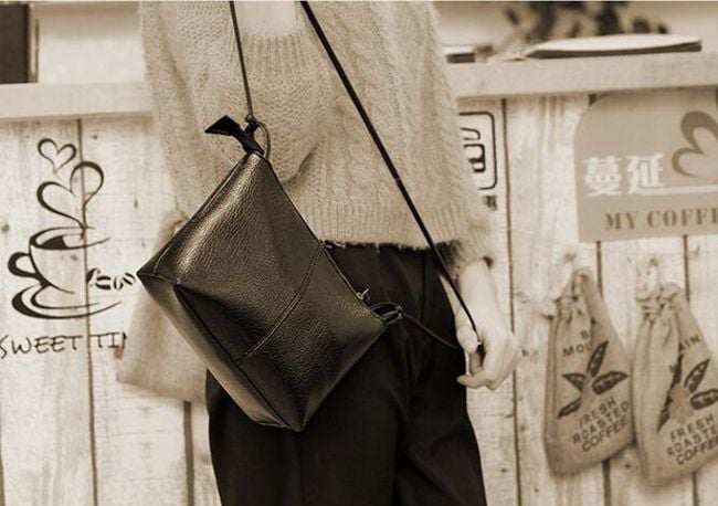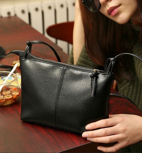 Women's stylish handbag in faux leather and black colour.
