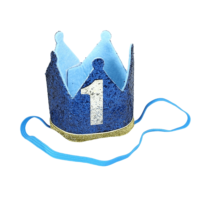 This birthday hat is perfect for celebrating a first birthday! Thanks to the elastic, it easily attaches to the head. The crown-shaped design is royal and festive, making it an ideal accessory for any first birthday celebration.