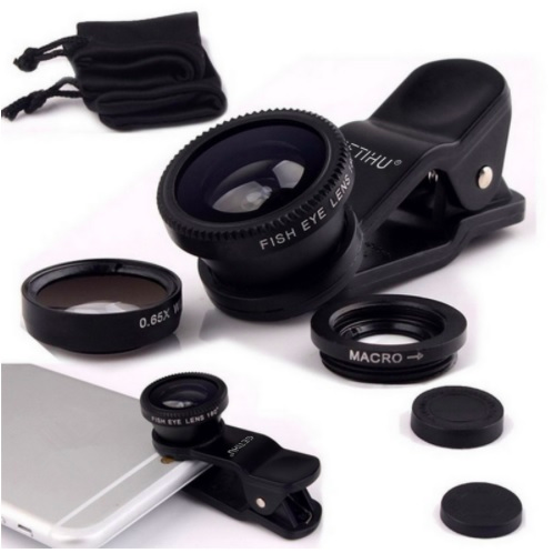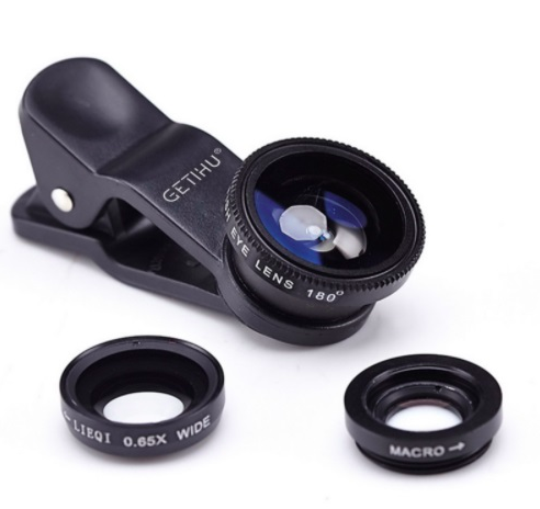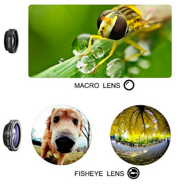 Universal Lens Set for Mobile Phones, Fish Eye Lens + Wide Angle Lens + Macro Lens