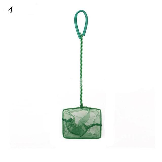 Fishing net with a long handle for aquariums. For catching fish or debris. Available in various sizes. In green colour.