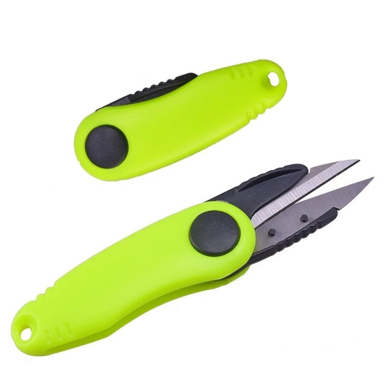 Fishing scissors, or also clippers for lines, wires, and hooks. Made from stainless steel and high-quality plastic. The colour of the scissors is sent randomly.