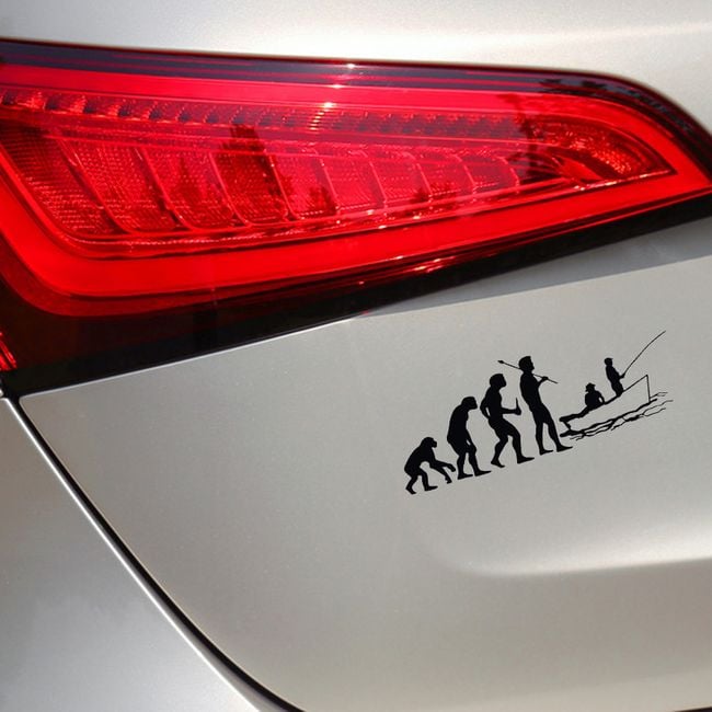 The sticker depicts the evolution of fishermen and is suitable as an accessory for your vehicle.