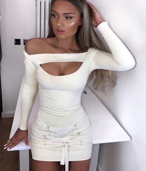 Fitted extended women's evening dress with lacing