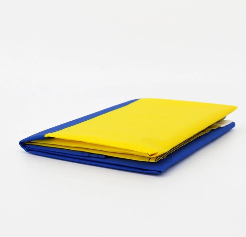 Large flag of Ukraine. Equipped with fastening eyelets on the edges. Can be hung on a pole or displayed from a window. Perfect for parades or for sports fans.