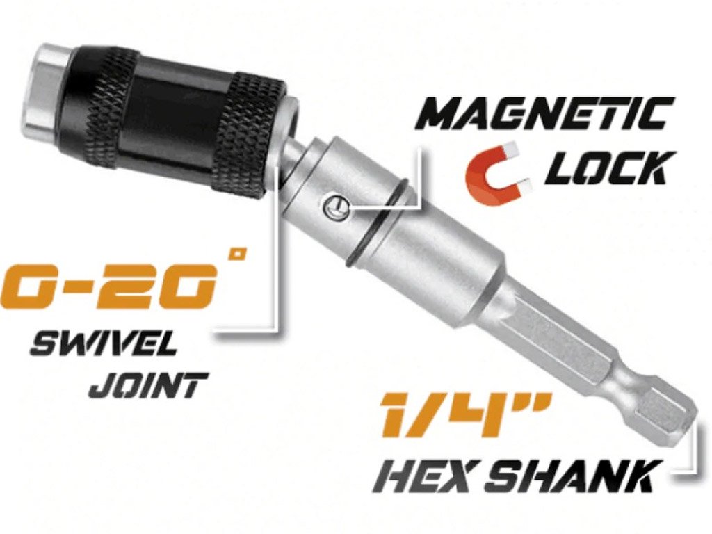 The magnetic drill attachment is perfect for every DIY enthusiast and is ideal for recesses, narrow spaces, and corners. You can use it both at home and during work assembly. A perfect gift for a husband, dad, or any home handyman. The drill attachment helps with tightening and loosening screws.