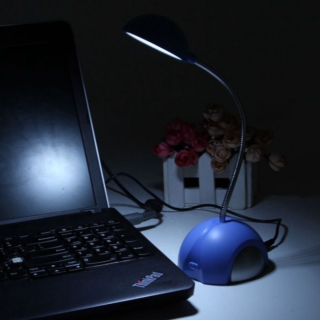 The flexible LED desk lamp features a total of 15 LED lights, providing ample illumination for activities such as reading or working on a PC. The lamp can be powered via a USB cable or three AAA batteries. It is available in two stylish colours.