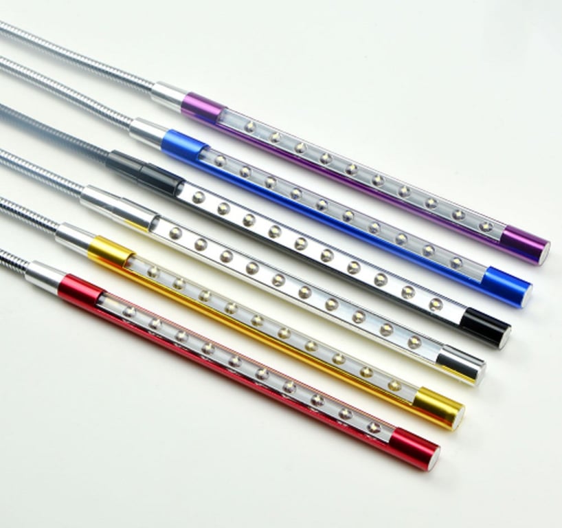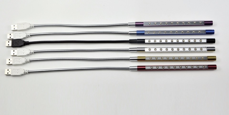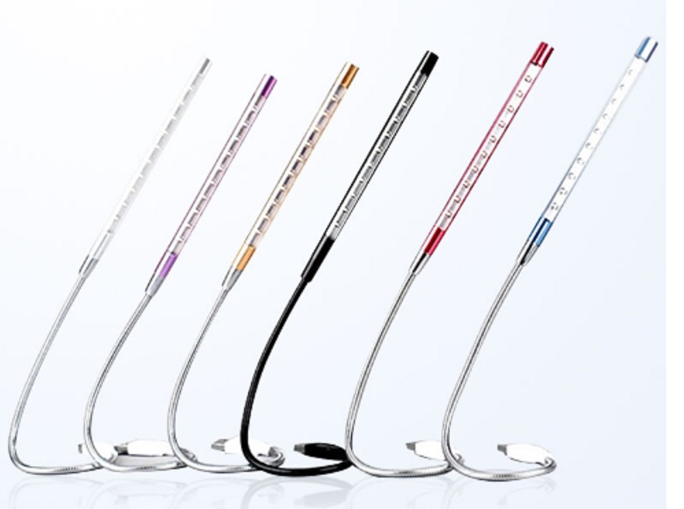 The USB portable lamp for laptops has a flexible, adjustable neck made of metal.