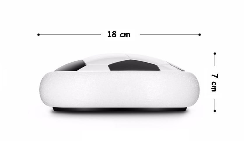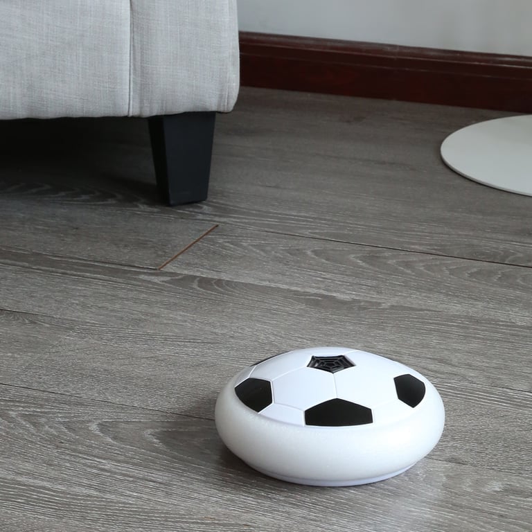 A hovering flat football with LED light will entertain not only children but also adults. The toy is suitable for indoor or outdoor play. This football disc hovers and glides over any smooth surface. The colourful LED flashing light attracts children, allowing them to play even at night. The soft foam cushion surrounding the edge of the disc protects furniture from damage, so it can bounce off anything without causing harm, and children will have fun kicking, blowing, etc. Material: plastic, foam Dimensions: 18 cm Age category: > 9 years Batteries: 4x AA (not included) Colour: bottom black, bottom white