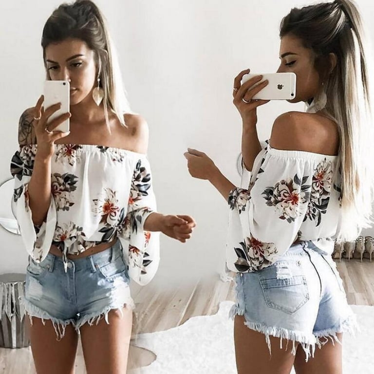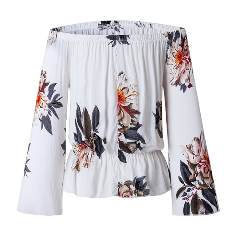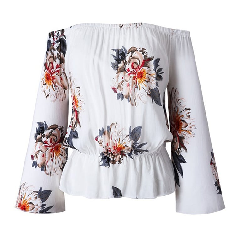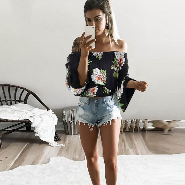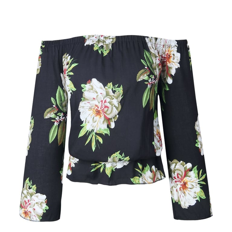 Women's floral crop top with long sleeves and elasticated waist. Available in two colours, floral pattern.