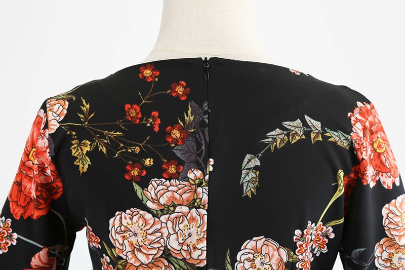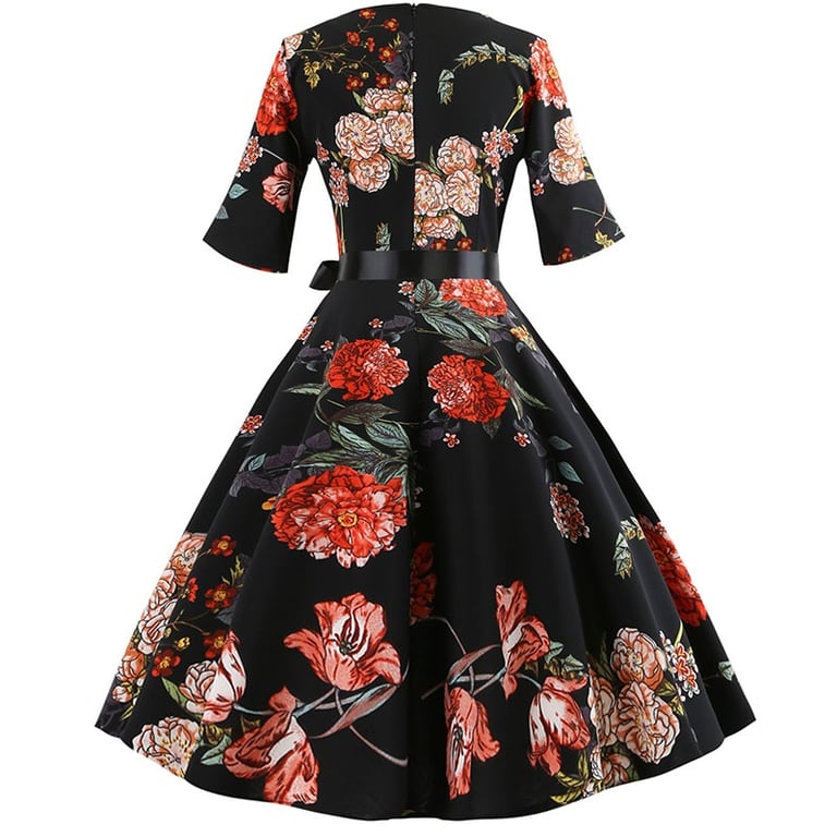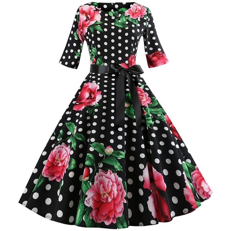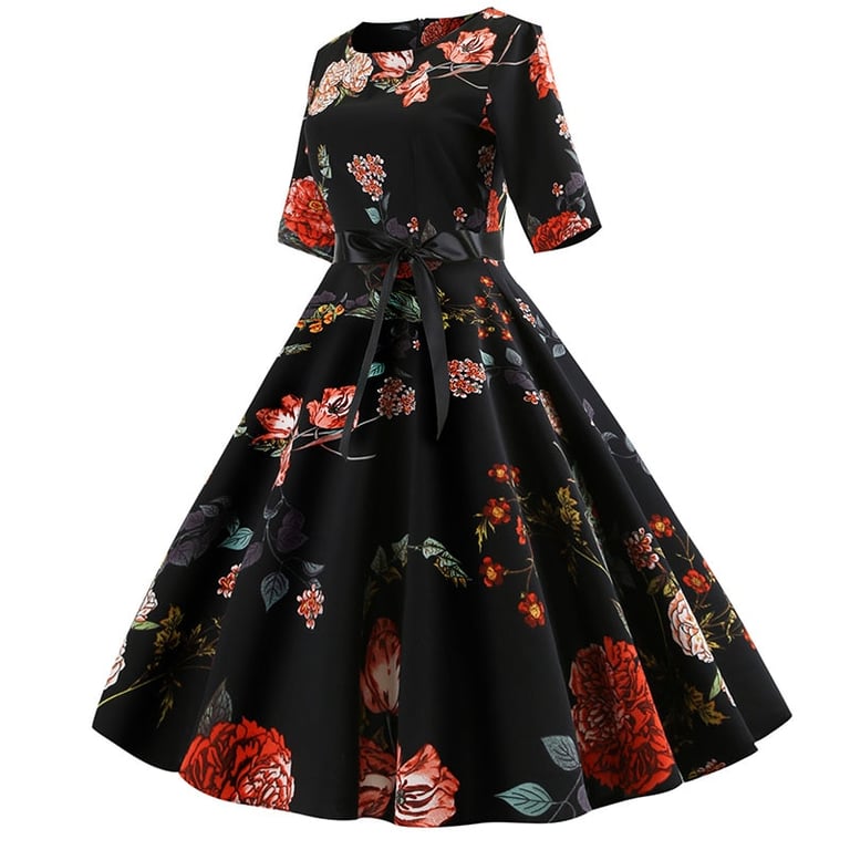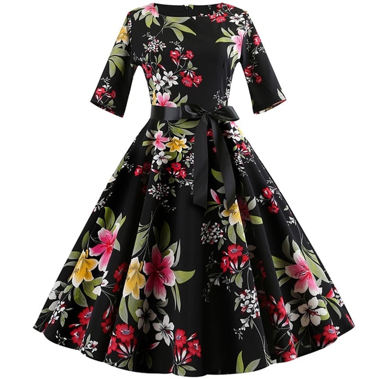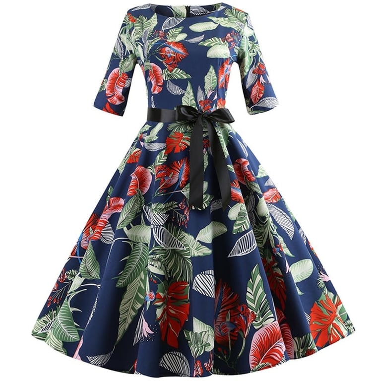 Women's dress with half sleeves and a round neckline.