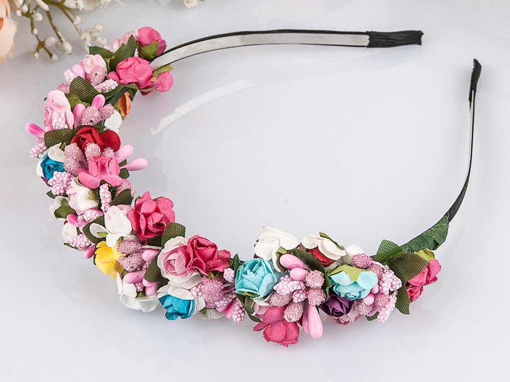 Stylish floral headband for hair, suitable for summer festivals and everyday wear. Available in several colours in a universal size.