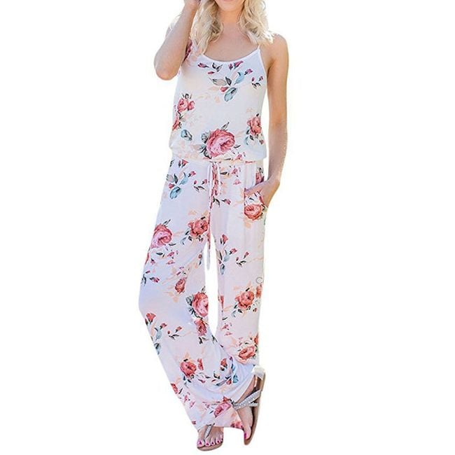 The floral jumpsuit with spaghetti straps will be a comfortable piece for everyday wear. The measurements provided are for the product, not the body.