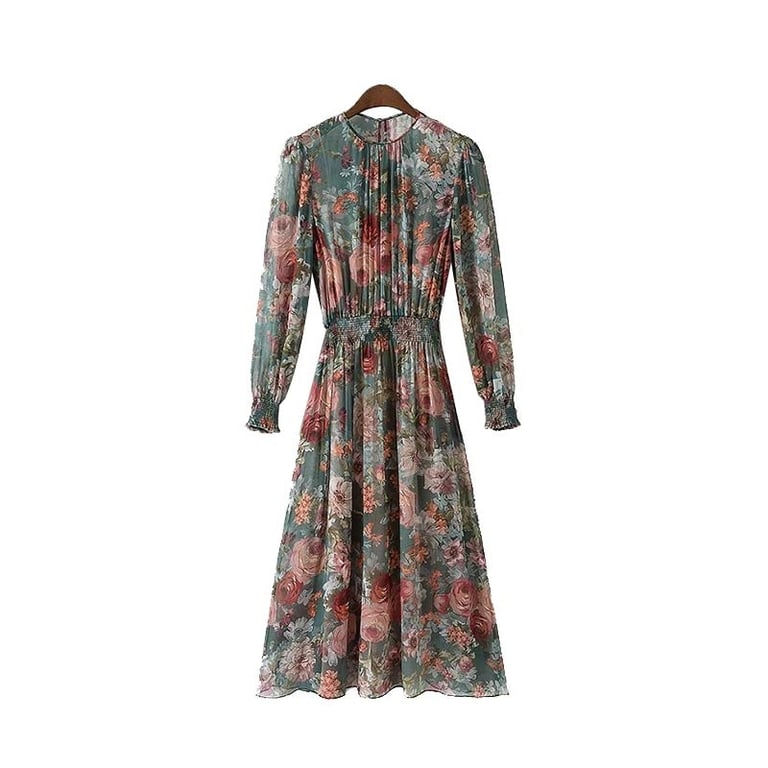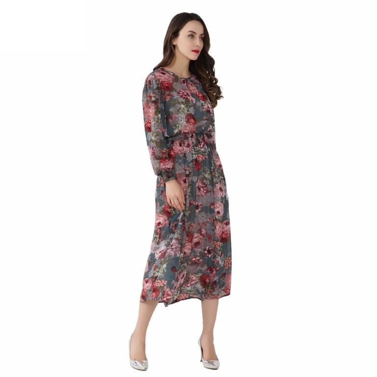 Women's chiffon long sleeve dress.