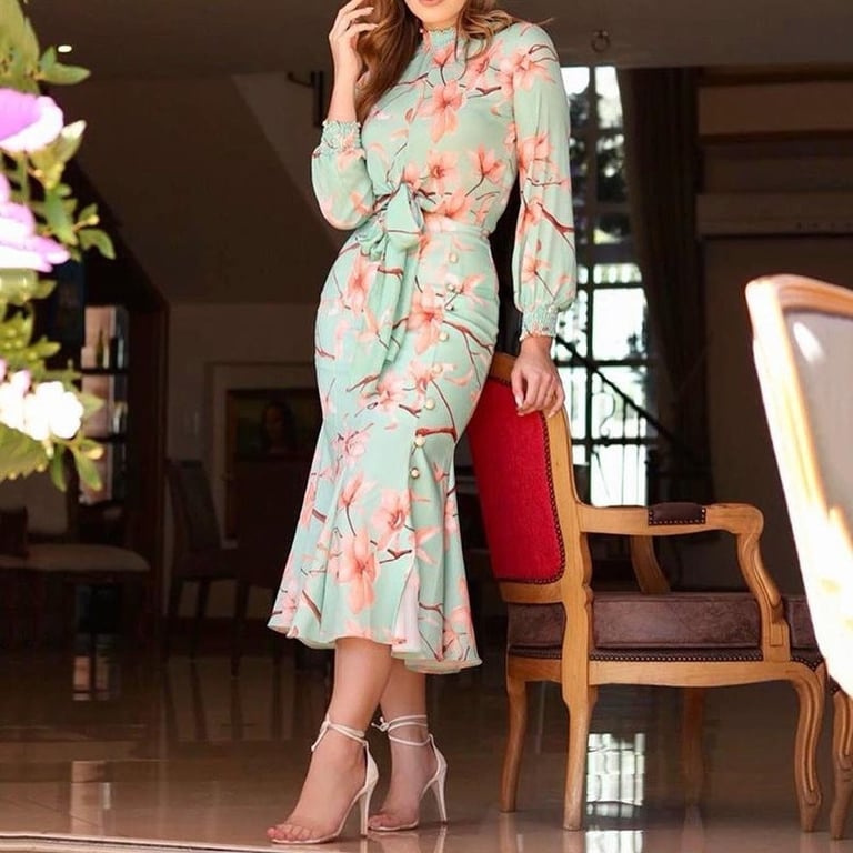 Beautiful colourful midi dress with flowers.